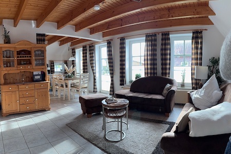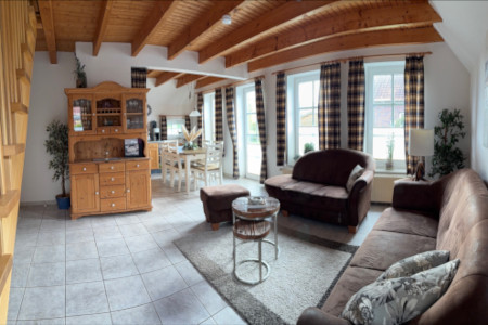 Bodenbeläge: Beide Bäder sind verfliest, Schlafzimmer mit Korkböden, Holzbalkendecke, der Wohn- und Küchenbereich ist ebenfalls mit Fliesen ausgestattet.