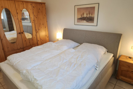 Schlafzimmer EG: Doppelbett, 5-türiger Kleiderschrank