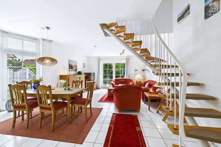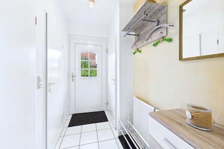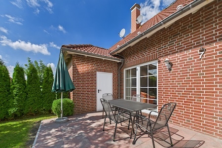 Terrasse, Garten, Pkw-Einstellplatz, ext. Abstellraum, Gartenmöbeln. Tor zum Hauseingang. Das Grundstück ist geschlossen umzäunt, 1 Haustier willkommen, W-LAN-Anschluss.
