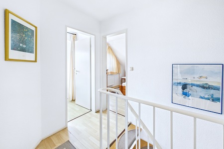 Bodenbeläge: Fliesen, Flur OG mit Laminat, in den Schlafzimmern im OG Laminat, im DG Laminat
