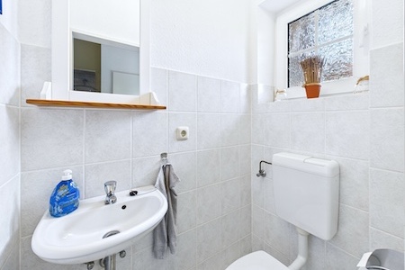 Bad: Dusche, Waschmaschine, Waschbecken, Spiegel, Föhn, Handtuchhalter
