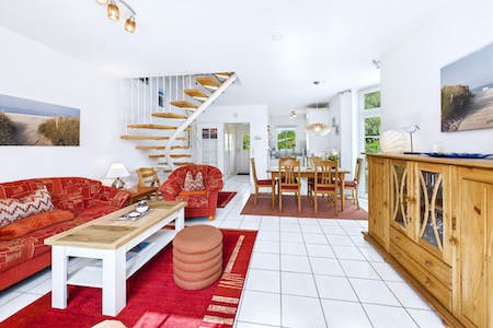 Wohnzimmer: 3er und 2er Couchgarnitur, Sessel, Couchtisch, Hocker, Kommode, Flachbildfernseher, CD-Spieler, Essecke mit 6 Stühlen